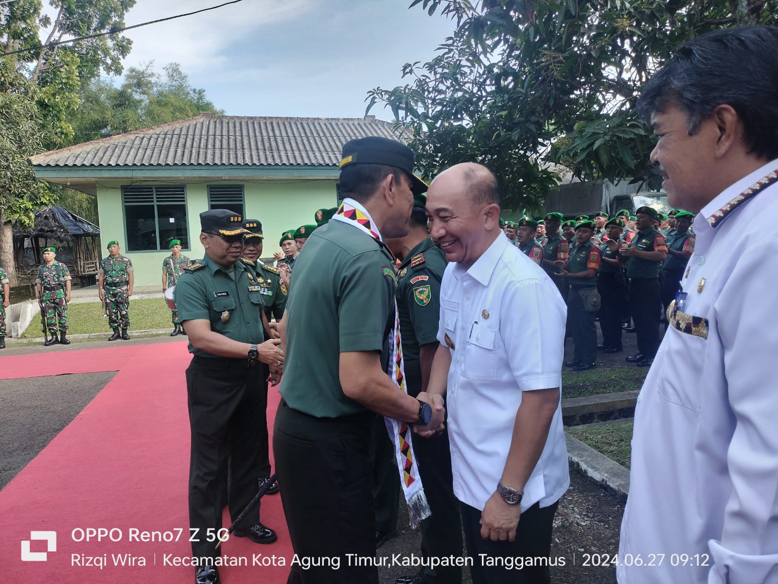Danrem 043 Gatam beserta rombongan tiba di Makodim 0424 Tanggamus, di sambut langsung oleh Dandim 0424 Tanggamus Letkol Inf. Vicky Heru Harsanto, S.I.P., M.Si. Bersama Perwira dan didampingi Forkopimda Tanggamus serta  Forkopimda Pringsewu.