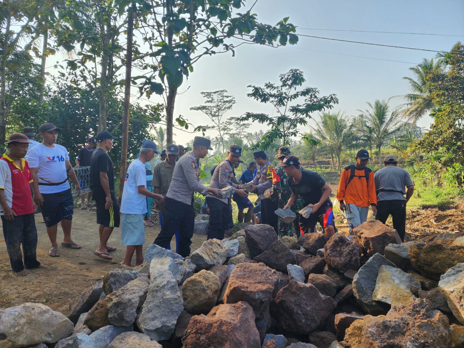 Polisi Bersama Warga Sukarame Talang Padang, Gotong Royong Membangun Beronjong