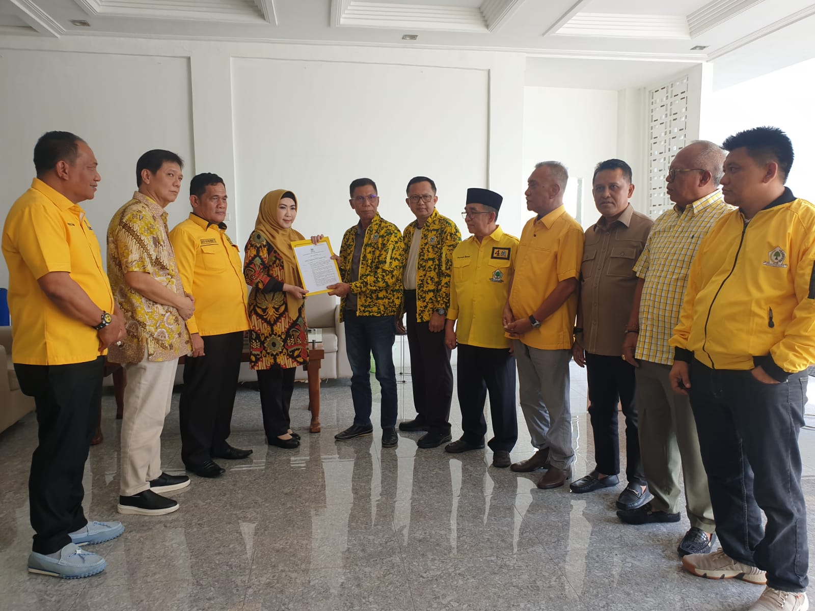 Dukungan tersebut, dibuktikan dengan penyerahan langsung formulir B1-KWK oleh Sekretaris DPD I Golkar Lampung, Ismet Roni, kepada pasangan Dewi Handajani-Ammar Sirajuddin, didampingi Bambang Kurniawan.