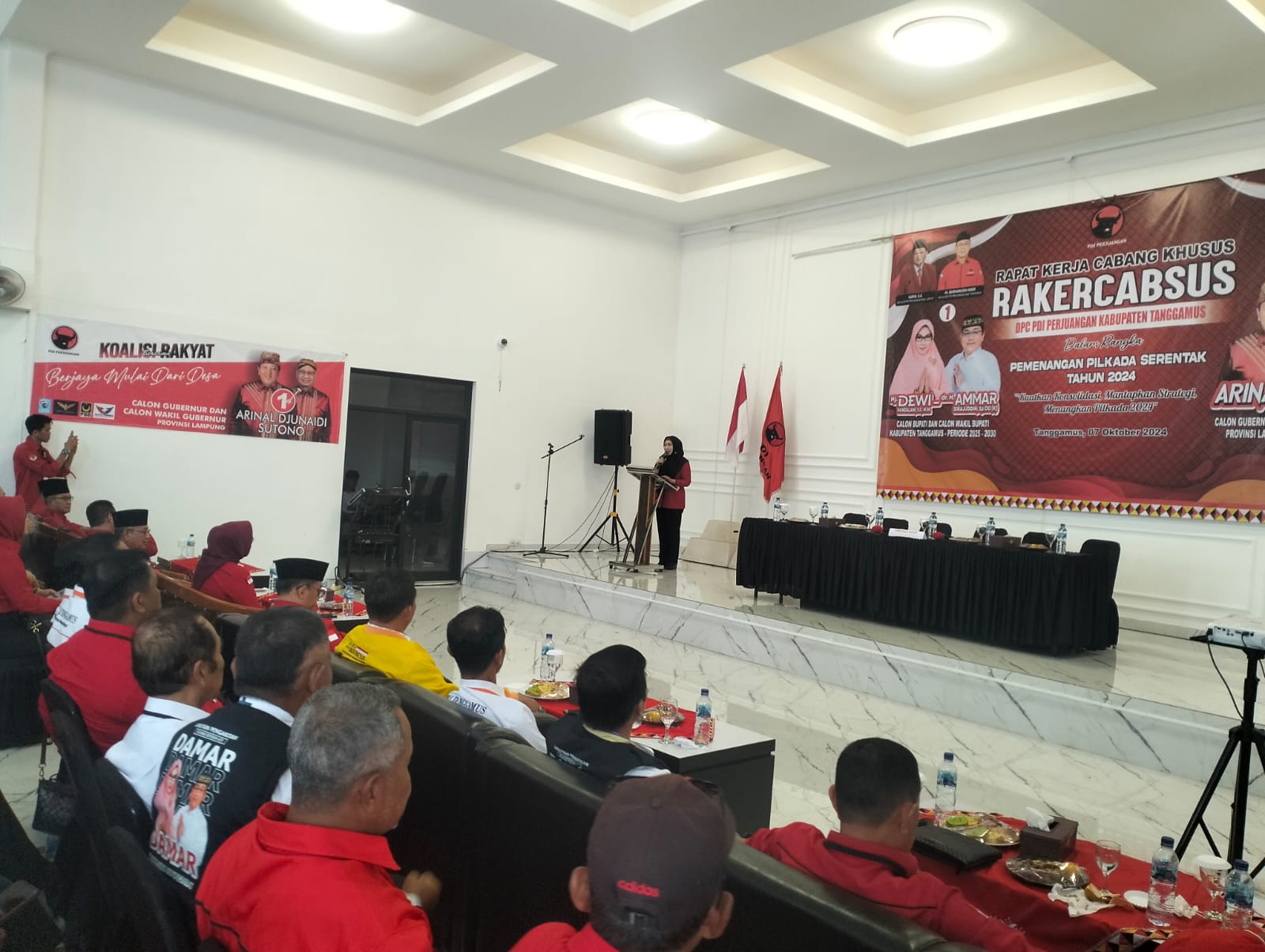 Hadir dalam Rakercabsus Sekertaris DPD PDI Perjuangan Provinsi Lampung, juga Calon Wakil Gubernur Lampung, Ir. Hi. Sutono., M.M., Ketua DPC PDI Perjuangan Kabupaten Tanggamus Hi. Burhanuddin Noer, dan Calon Bupati Tanggamus Hj. Dewi Hadajani, S.E., M.M.