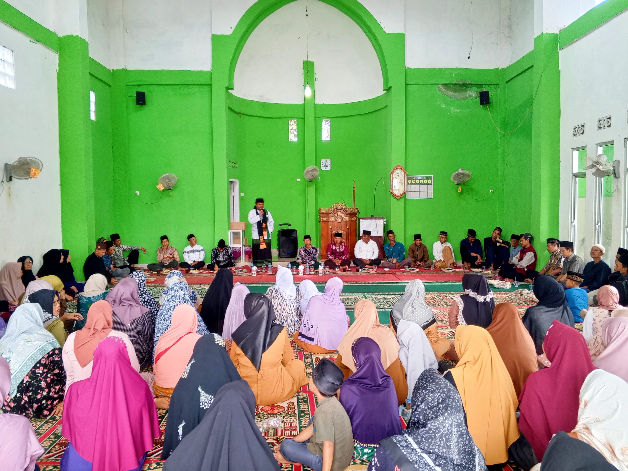 Acara dimulai pembacaan ayat suci Al-Qur’an, selanjutnya disambung dengan sambutan Kepala Pekon Gunung Meraksa, Usran, mengajak masyarakat untuk meningkatkan ibadah di Masjid.