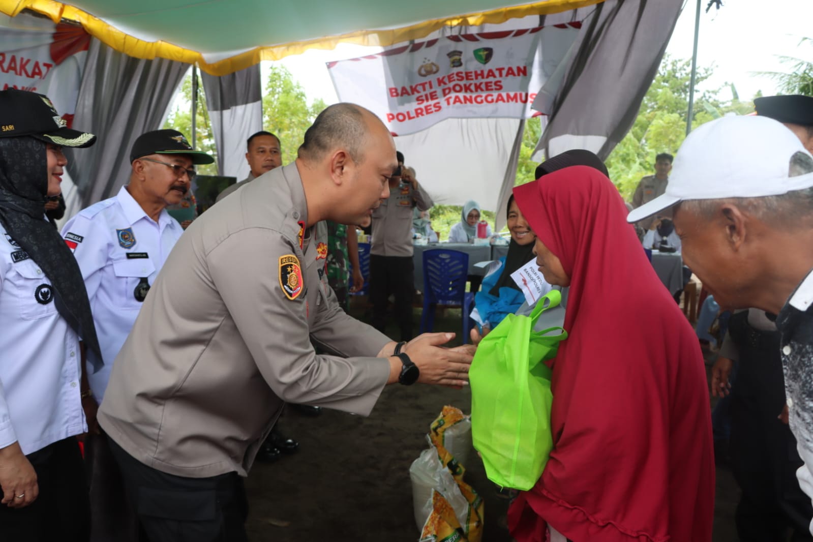 Kegiatan dipimpin Kapolres Tanggamus, AKBP. Rivanda, S.I.K., dihadiri oleh jajaran kepolisian, tim dokter dari Urusan Kesehatan (Urkes) Polres Tanggamus. Saat kegiatan berlangsung terlihat masyarakat setempat sangat antusias menerima bantuan dan pemeriksaan kesehatan.