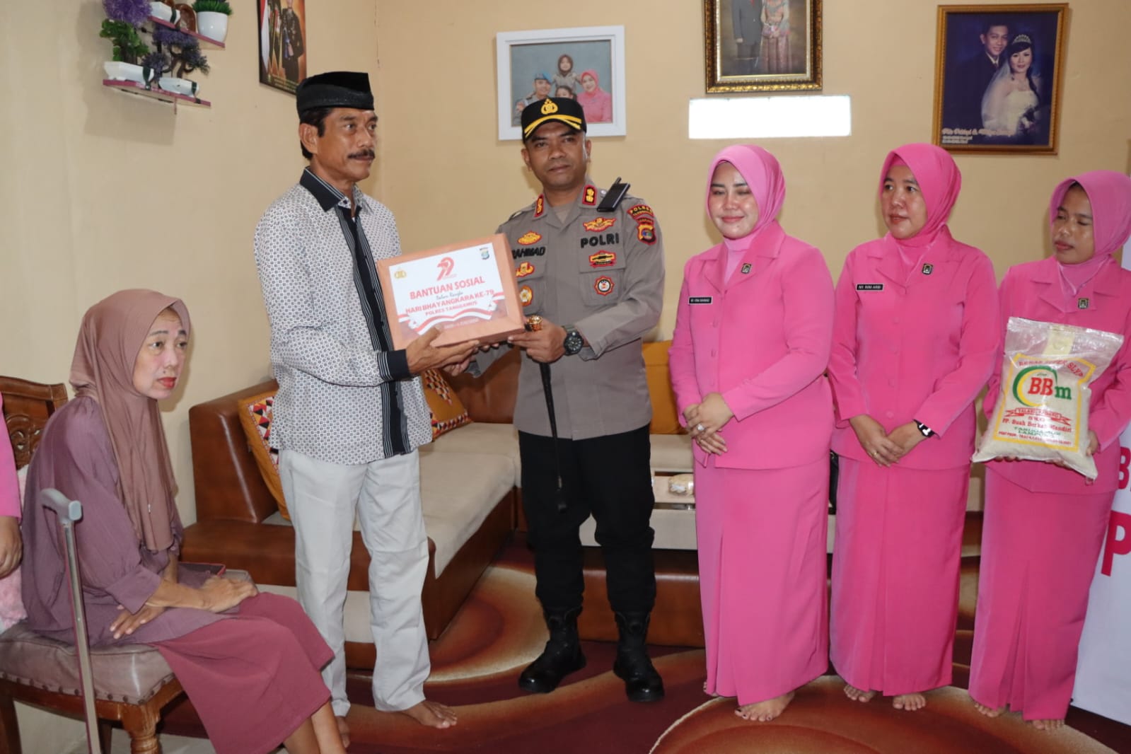 Sedangkan Kabag Ops Kompol. Yofie Kurniawan, S.H., M.H., bersama Kabag SDM, Kompol. Sarwani, S.E., M.M., melakukan kunjungan ke kediaman Ibu Lela, di Pekon Kalibening, Kecamatan Talang Padang.