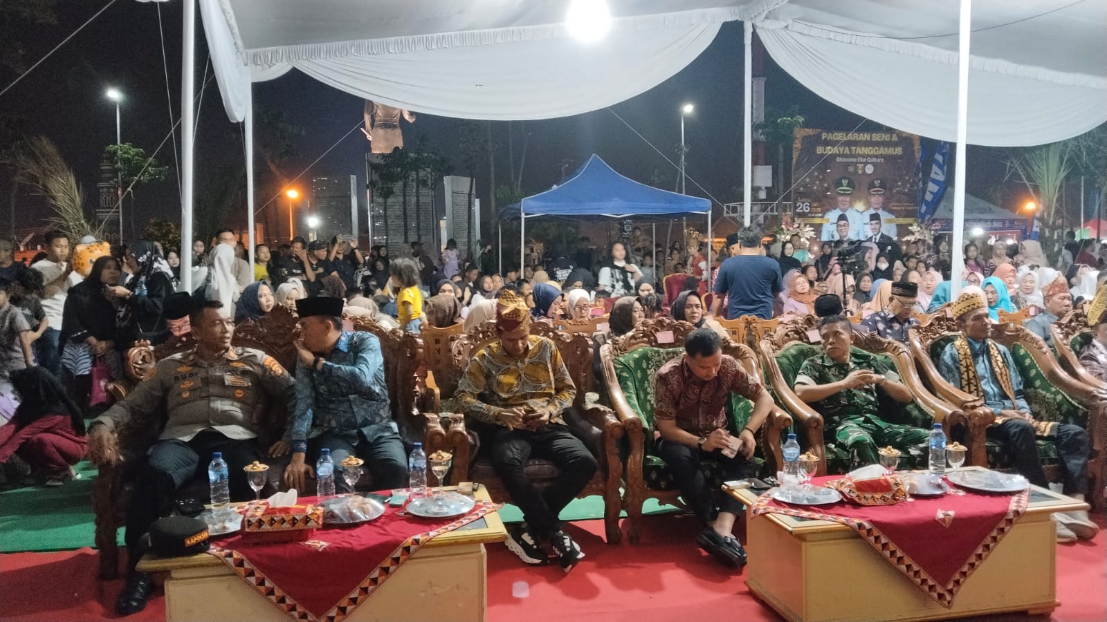 HARIANPROGRES.com – Pagelaran Seni dan Budaya Tanggamus dimotori oleh Sanggar Tungga Production di pusatkan di Taman Ir. Soekarno, Kota Agung Tanggamus, Sabtu (26/7/2025) malam.