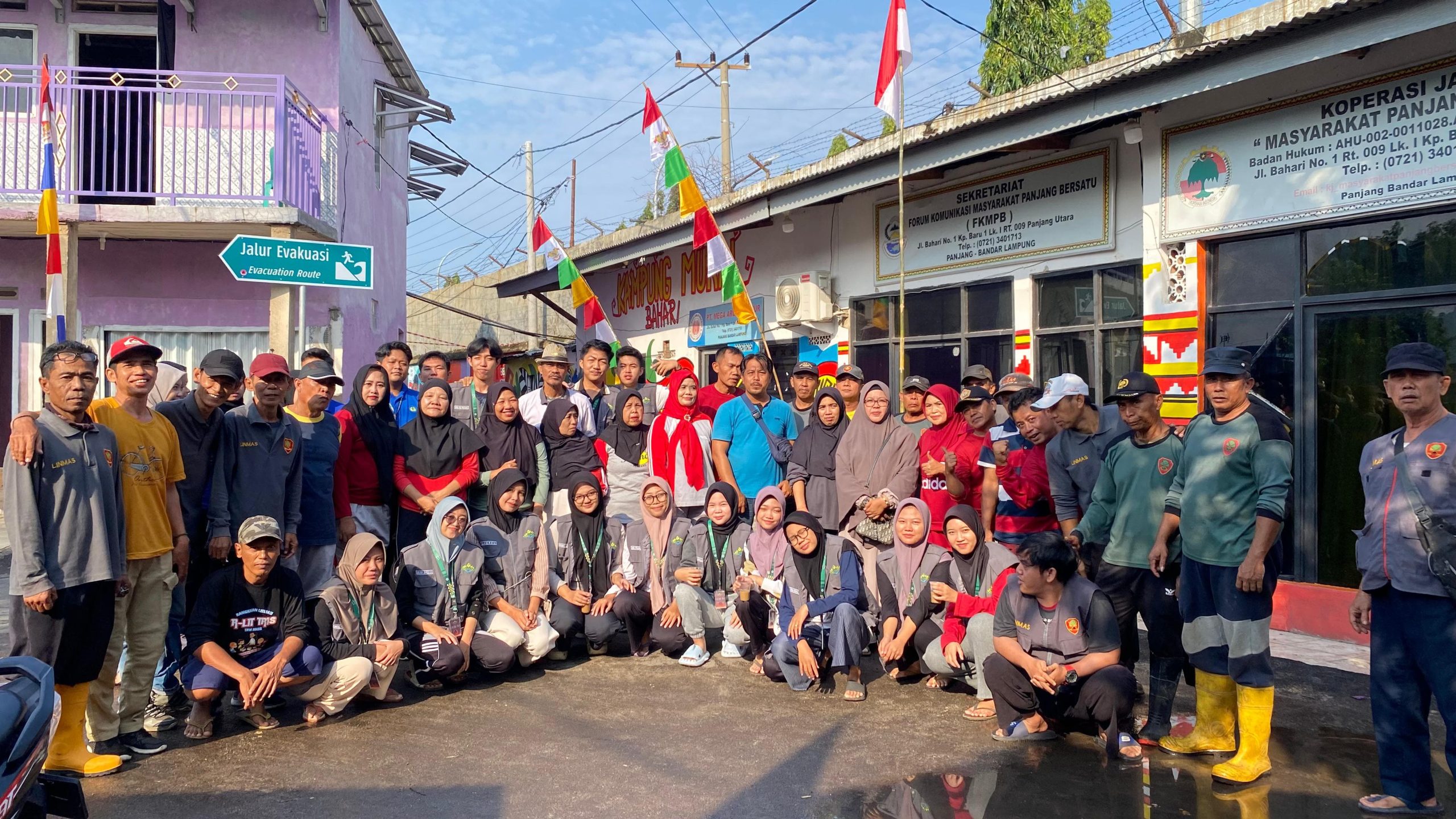 Mahasiswa Universitas Islam Negeri Raden Intan Lampung (UIN RIL) kelompok 50 Kuliah Kerja Nyata (KKN) mengadakan kegiatan gotong royong bersama masyarakat di Jalan Bahari, Kelurahan Panjang Utara Kecamatan Panjang.