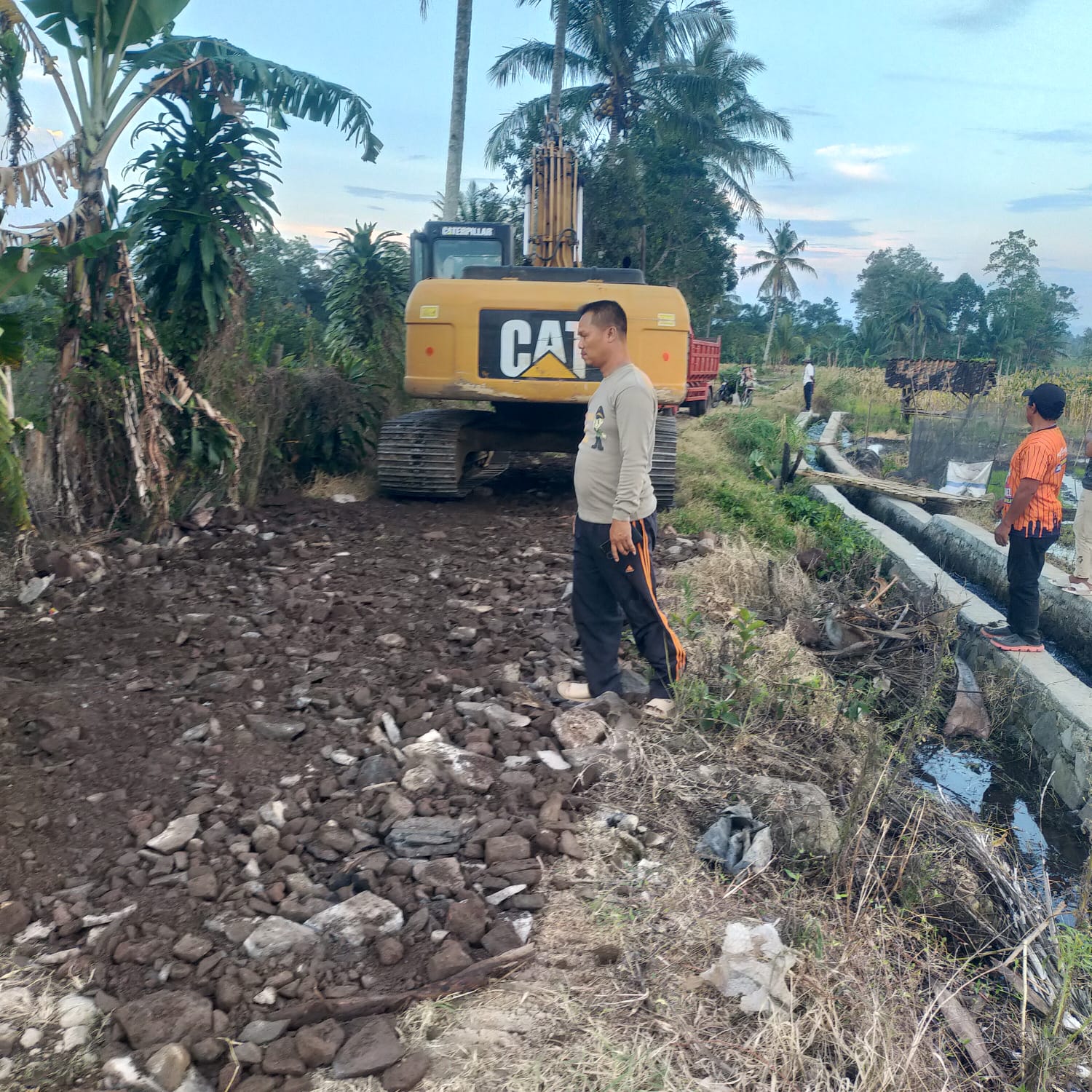 Akhirnya dengan niat tulus  dan ikhlas tanpa mengharapkan sesuatu mewujutkan keinginan memperbaiki jalan rusak,  dengan cara menimbun badan jalan menggunakan exavator sekaligus memasang tiga gorong-gorong untuk saluran pembuangan air.